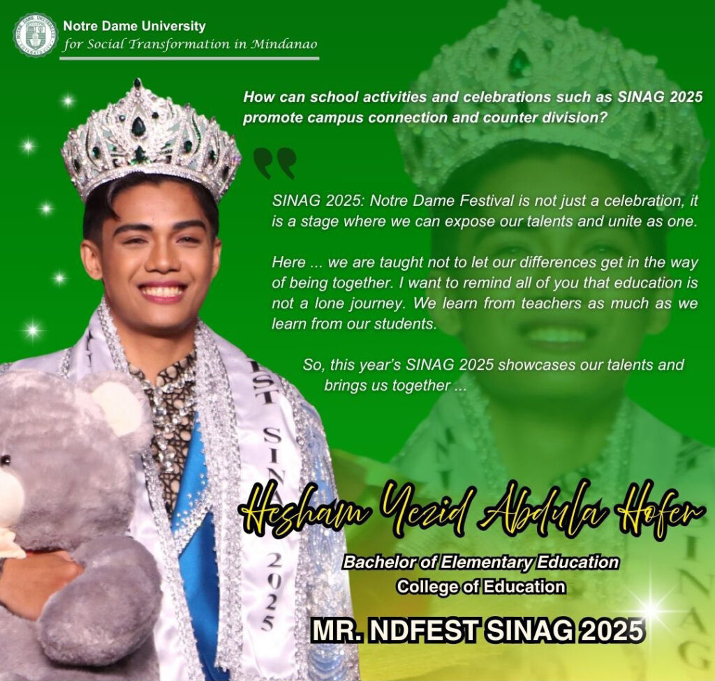 Hesham Yezid Abdula Hofer and Brea Torres Barcenas, our Mr. and Ms. NDFest SINAG 2025!